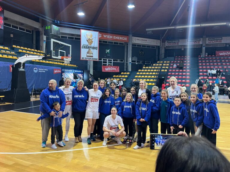 Die Wu12 Mu14 und Wu14 nutzten die Einladung von Basketball Austria und besuchten gemeinsam mit Trainer und Eltern das spannende Spiel der Damen Nationalmannschaft. Mit über 60 Teilnehmern strahlte die Halle in Blue Devils Blau. Die Kinder hatten sichtlich Spaß und fanden mit dem Maskottchen einen neuen Freund. Nachdem Spiel konnten noch gemeinsame Fotos mit den Spielerinnen gemacht werden und ein paar Tipps geholt werden
