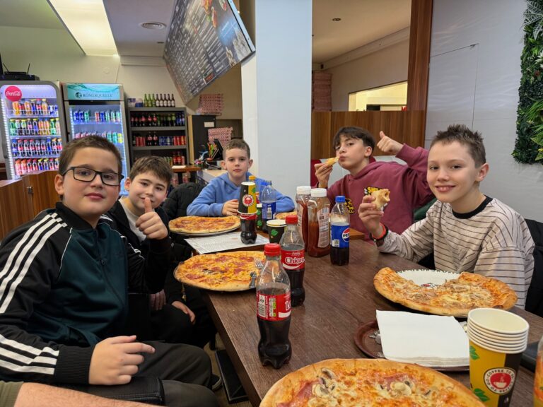 Nach den beiden Partien genoss das Team noch eine Pizza-Runde, bevor es gut gelaunt die über zweistündige Heimfahrt antrat.